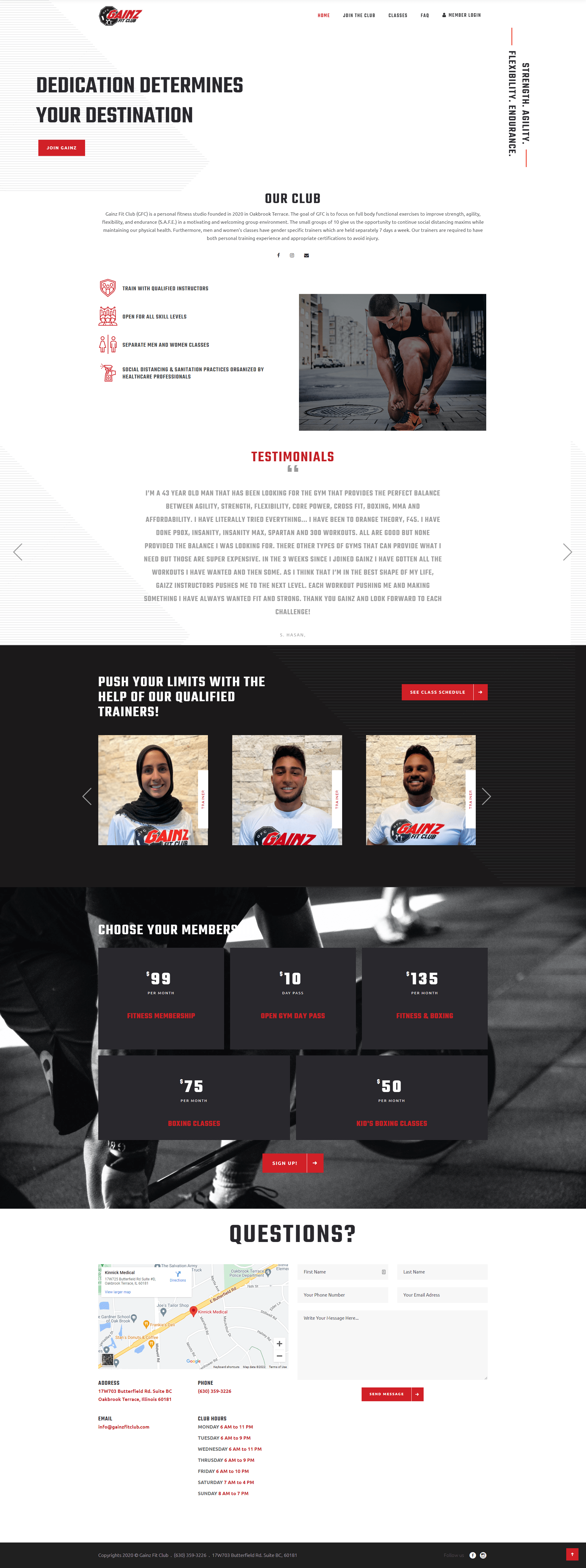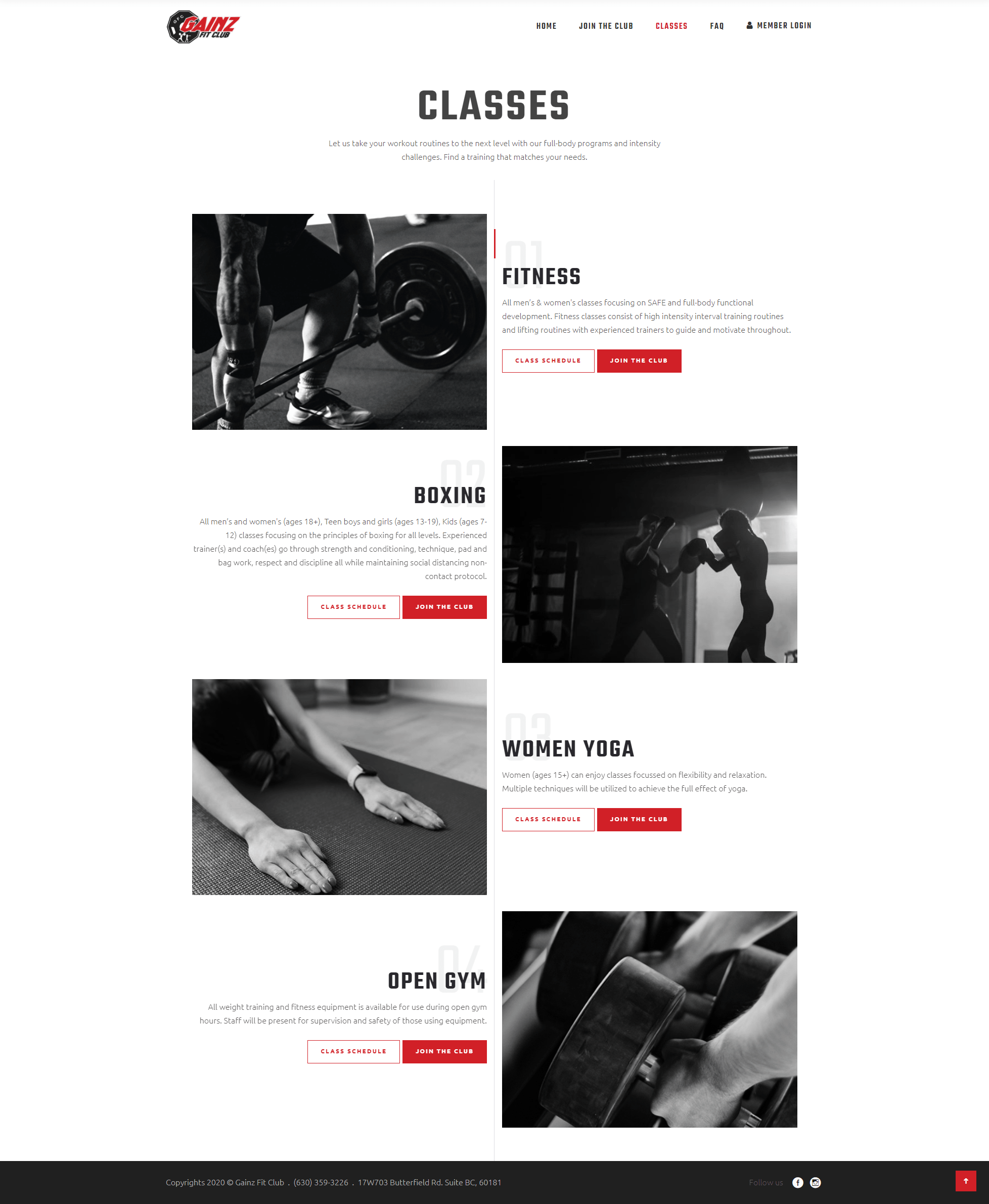 Used pop red color schemes and bold font styles to complement the brand and fitness industry. This will drive site visitors right in and paint a clear visual of the fitness club vibe. We also utilized some great icons to display all the great amenities they offer. Giving a throughout clean and bold look.